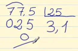 Vamos a ver un ejemplo, dividiendo 77,5 entre 25